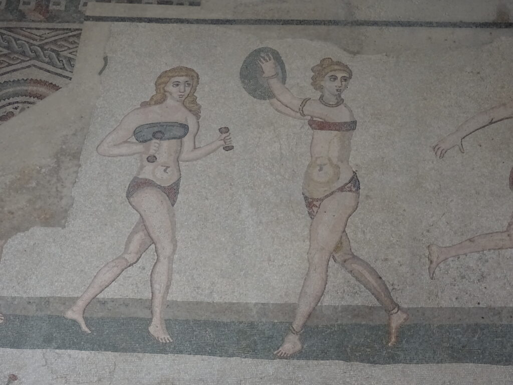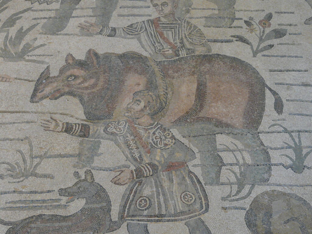 Villa romaine du Casale (IVe siècle apr. J.C.) — Résidence aristocratique près de Piazza Armerina, inscrite au patrimoine mondial de l’UNESCO. Ses mosaïques exceptionnelles, parmi les mieux conservées de l’Empire romain, offrent un témoignage unique de la vie, des loisirs et de l’imaginaire romains en Sicile.